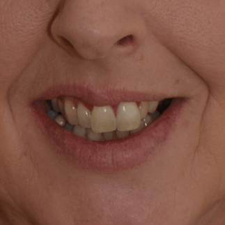 For example, in this case the centrals are parallel with color differences and the laterals are distally inclined. This causes visual tension in the smile composition: